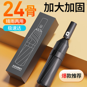 ビジネス24骨全自動傘折り畳み傘高級感黒ゴム晴れ雨男傘印ロゴ太陽日除け傘