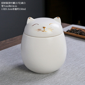 越境ペット陶磁器缶招き猫創意事務置物陶磁器密封貯蔵缶防湿缶茶葉缶バッチ