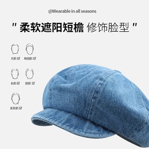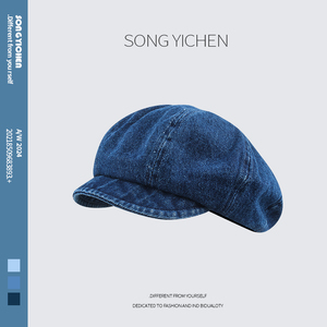 大きい頭の周りの短い軒のカウボーイのベレー帽の女性のスタイルの洋気の青い八角の帽子の日本の顔の小さい雲の画家の帽子