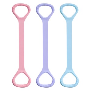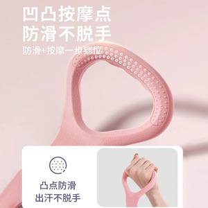 女性の背中を開けて肩を伸ばしてフィットネスの筋を引いて背中の美しい家庭用ヨガの八の字の弾力の縄を練習します。