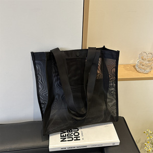 韓国版ファッション透明網紗片肩包大容量特包透かし網布ビーチバッグクロスボーダー対外貿易