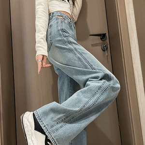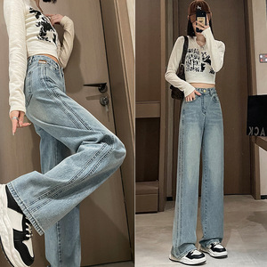 新型のアメリカのレトロなジーパンの女性の腰が高くてやせている広腿のズボンの秋の小さい背のデザイン感があります。