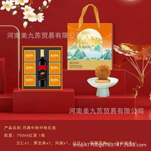 中秋節用の赤ワインと月餅のギフトボックス、月餅6個入り、贈り物に最適、企業の団体購入、従業員へのギフト