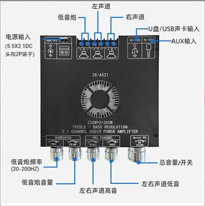 ZK-AS21 2.1チャンネルTPA3255 bluetoothデジタル機能ボードAPP中性ロゴなし