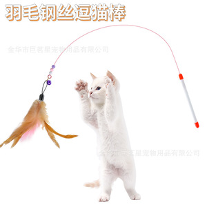 猫のおもちゃは猫の棒のワイヤーの羽を換えて頭の真珠の鈴をプラスして長く噛んで釣ります猫のインタラクティブな現物の卸売りに耐えます。