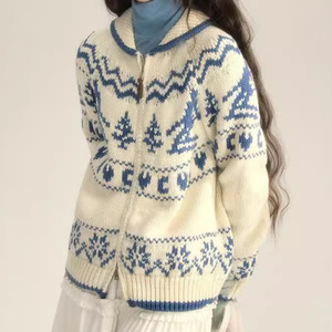 2024新秋冬アマゾン北欧レトロ越境風クリスマスツリーセーター女性ゆるいニットカーディガン女性