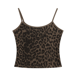 ヒョウ柄の小さいキャミソールの女性の夏のアメリカの甘いギャルの風は短い金を修理します。