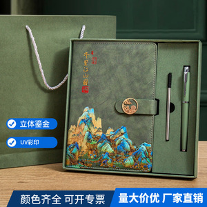 千里江山図 国風ノート ビジネスギフトギフトボックス オフィス会議記録帳 メモ帳 国潮風