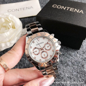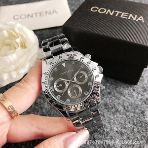 クロスボーダー人気ファッションカップル腕時計欧米風三眼大文字板石英ビジネス優雅防水鋼帯時計