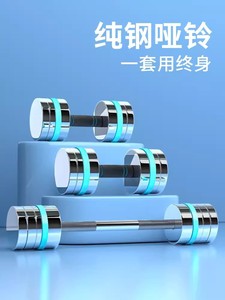 纯钢哑铃男士健身家用实心可调节电镀女配重铁专业钢制大重量杠铃