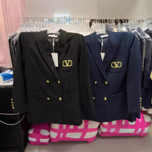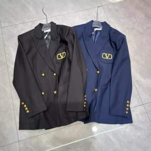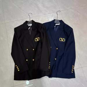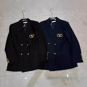 24早秋の新型大衆デザイン潮牌双列ボタンスーツのコート金糸刺繍アルファベットの中長