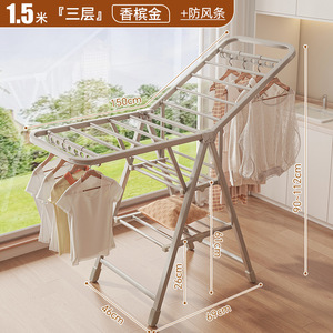 1.6m 二層シャンパンゴールド - 厚みのある角チューブ + 防風ストリップ + 一体型プーリー