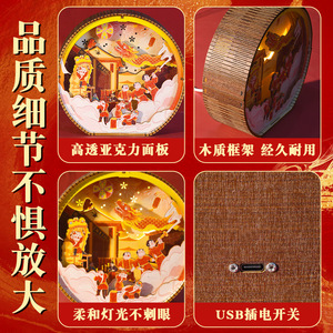 中秋節手作りDIYナイトライト木彫りランプクリエイティブギフトレトロ文化クリエイティブギフト3Dナイトライト装飾置物