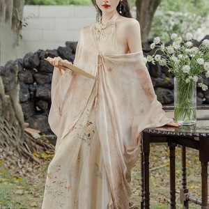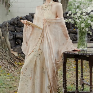 江南水郷清冷系セット新中国式改良チャイナドレス水墨プリントワンピース禅意カーディガン2点セット