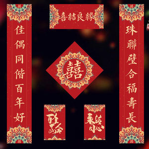 創意結婚対聯新婚喜字喜聯門男女方結婚祝い結婚式ルーム装飾