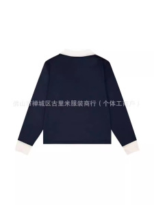 博主同款藏青色美式复古条纹拼色休闲百搭街头V领polo长袖t恤上衣