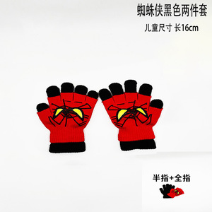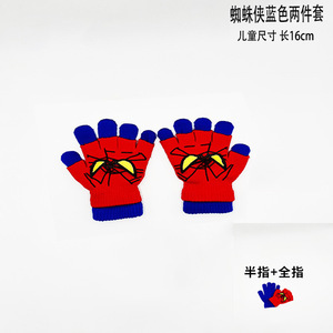 冬用暖かい手袋 スパイダーマン 子供 学生 ニットプリント 男の子 フルフィンガー/ハーフフィンガー 書き込み可能 手袋 卸売