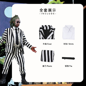 ハロウィーン新作cos衣装陰間大法師甲殻虫汁コスプレストライプスーツセット演出服