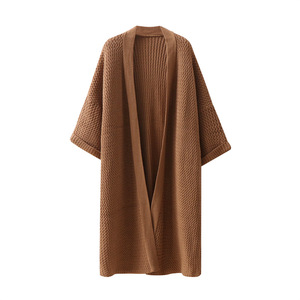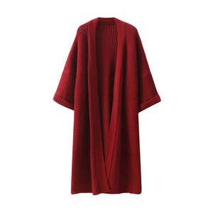 超ロングタイプの膝を越えたニットセーターのコート秋の大きいサイズのカジュアルな怠惰な風のゆるいカーディガンのシンプルな大気コート