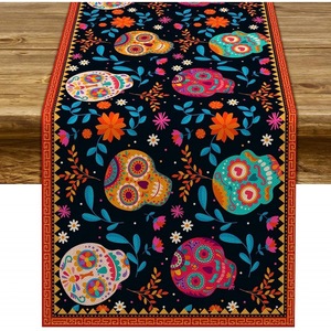 国境を越えた新製品水彩万寿菊頭蓋死節テーブルタオル、性キッチンテーブル装飾屋外家庭パーティー