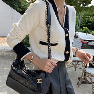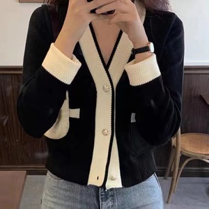 春と秋の新商品2024小香風メリヤスカーディガンの女性の短いタイプは色の真珠にぶつかってゆったりとしたレトロなコートの上着を掛けます。
