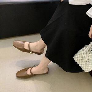 2025年秋新作 おしゃれなスクエアトゥ ラフスタイル ローファー フラットシューズ バイフォールドトゥ 妊婦さん向け スリッポン ハーフスリッパ レディース 外履き
