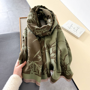 レトロ風竹の葉プリント新作ファッション秋冬ロングスカーフレディース高級感2024シンプル防寒ストール