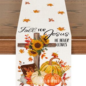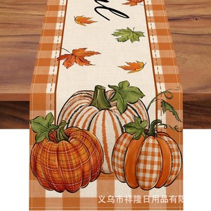 国境を越えて爆発した感謝祭テーブル旗秋カボチャ楓葉キッチンテーブルパーティー装飾亜麻材質テーブルクロス