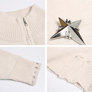 アメリカの街頭の重工業は大衆のデザイン感の男女のカップルの金の立襟のファスナーのカーディガンのニットのセーターを切ります。