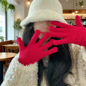 Ins韓国毛糸ニット手袋冬の女性の厚さはタッチパネルに触れることができます。