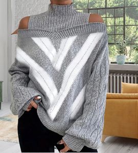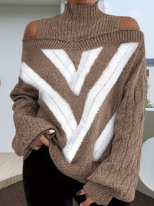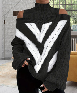 欧米の国境を越えたアマゾンファッション秋冬の幾何学的な色合わせは、快適でリラックスした暖かい女性のセーターです。