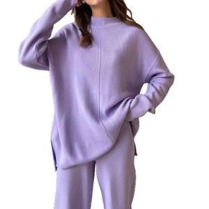 国境を越えた貿易ヨーロッパとアメリカの大きいサイズのニットスーツワイドレッグパンツ2025秋冬新作ハイネックセーター女性のツーピーストレンドセット