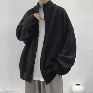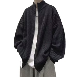 男子学生向けの秋のカーディガンセーター、ゆったりとしたレイジーなスタイルのセーター、トレンディなアメリカンレトロなハーフスタンドカラーニットセータージャケット