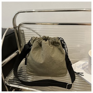 軽量スポーツカジュアル大容量洋気ペンダント2024純色夏ファッションしわバケツシングルショルダーバッグ