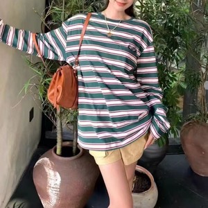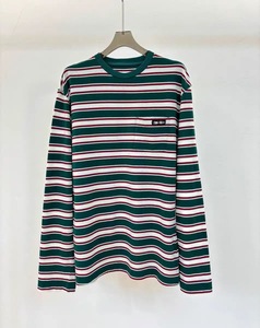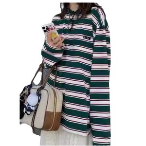 Miu Feng Ju Ji の同じレトロな春と秋のカレッジスタイルのコントラストストライプの文字カジュアルルーズラウンドネックボトム