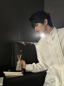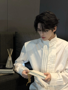 白いシャツの高級感のあるしわの肩のコートのファッションブランドの欧米の街頭のcleanfitスーツの中にシャツの男を掛けます。