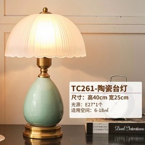 ヨーロッパ式電気スタンドレトロ田園陶磁器ガラスledライト书斎机知能照明寝室装飾ベッドヘッドライト