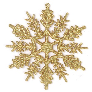金色の六角形の雪の結晶 10CM (ロープ付き)