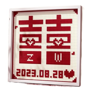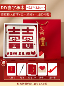 セット【ビッグレッド】ダブルハピネス積み木+フォトフレーム+ギフトバッグ(4つのギフト)