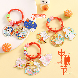 クリエイティブな漫画風中秋の月兎ペンダント、車のキーホルダー、バッグの飾り、カップルへの小さなギフト、中秋の贈り物