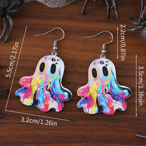 欧米の越境ハロウィンのかわいい西部のカウボーイの帽子の彩色の幽霊のペンダントのイヤリングの木製の両面の耳飾り