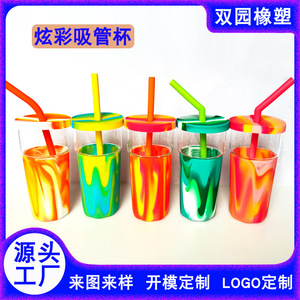 新しい高ホウ素シリコン単層ガラスシリコン断熱多色カラーストローカップ防塵コーヒーカップとロゴ
