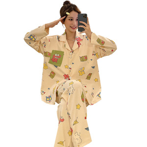 Ins風春秋パジャマ少女甘くて可愛い美楽蒂学生韓国版アニメ長袖ルームウェアセット