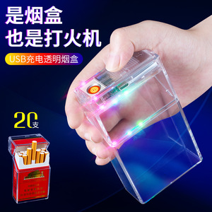 アクリル透明フラッシュタバコ箱密封防湿USBタングステン線タバコ器プラスチックタバコ箱メーカー直卸売り