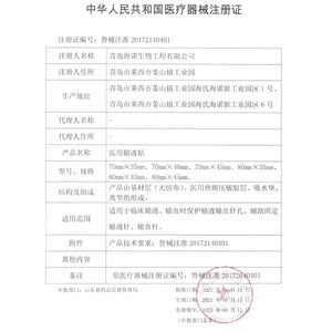 魯省食品医薬品監督管理局の機器生産許可20120047番号