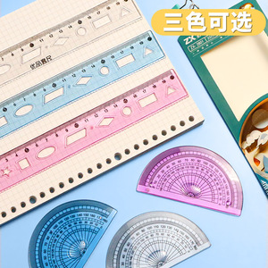 軟尺の学生は定規の直尺の三角板の定規をはめます。