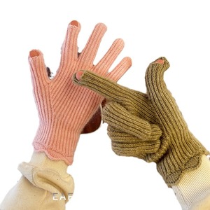 かわいい純色のレースのカシミヤの毛の5本の指の手袋の秋冬の騎乗の防寒の保温の成人は指を分けてタッチパネルの女性を指します。