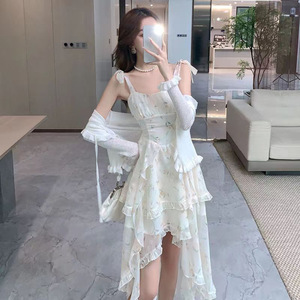 フランス風のお茶は甘くて、花のサスペンダーのワンピースの春夏のデザイン感が不規則です。