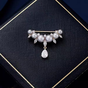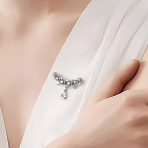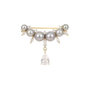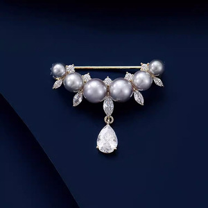 気質パールウォータードロップブローチ、高級女性の絶妙なタッセルスーツコサージュ、固定服露出防止ピンアクセサリー