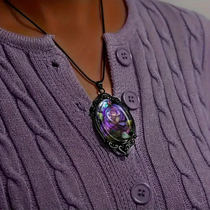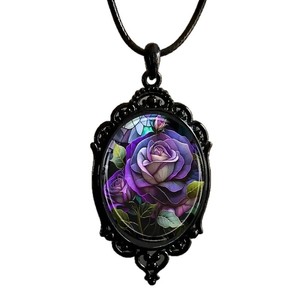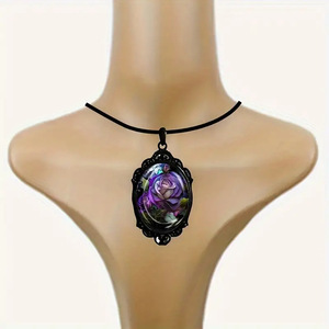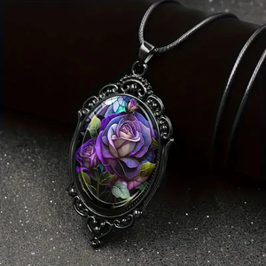 クロスボーダー新着フラワーパターンブラックフレームガラスペンダントチェーンネックレス、ロマンチックなジュエリーギフトクリスタル